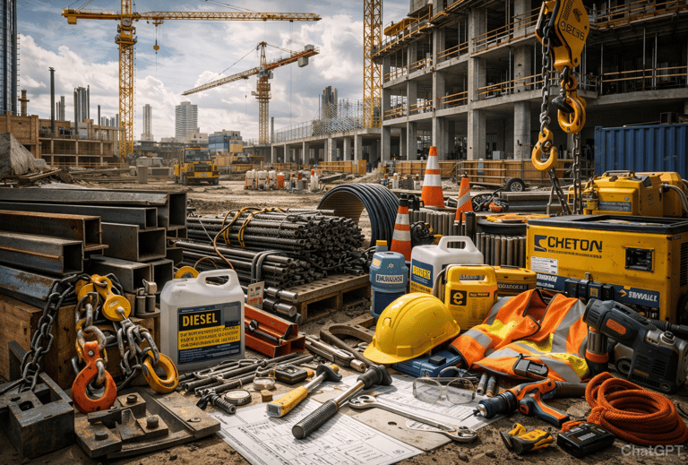 We provide essential construction consumables for industrial, civil, and infrastructure projects, from structural steel and fasteners to hydraulic systems, electrical supplies, lifting equipment, and portable site tools. Our products support safe execution, structural integrity, and efficient site operations.